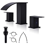 BRAVEBAR Black Waterfall Bathroom Faucet 3 Holes – 8Inch Widespread Bathroom Sink Faucet | Two Handles Lavatory Vanity Sink Faucets with Pop-up Drain Assembly & Supply Lines Matte Black