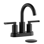 Roffenny Matte Black Bathroom Faucets for Sink 3 Holes, Contemporary 2-Handle 4 inch Centerset Bathroom Faucet, 4 in Center Bath Vanity Sink Faucet, High-Arc 360 Swivel Spout, with Pop-up Drain