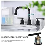 WOWOW Two Handles Widespread 8 inch Bathroom Faucet Black 3 Pieces Basin Faucets 360 Degree Swivel Spout Lavatory Sink Faucet