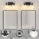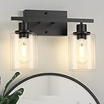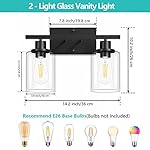 【PREMIUM MATERIAL & MODERN DESIGN】This 2-light bathroom vanity light are built in sturdy metal black base and lamp body, with clear glass shades, create a modern warm to your home lighting. The black vanity light fixture adds high-end texture and elegance to your bathroom and vanity areas, perfect for any decoration style like minimalist, modern, vintage, etc.