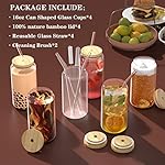 4pcs Glass Cups with Bamboo Lids and Glass Straws, 16oz Drinking Glasses Can Shaped Glass Cups, Beer Glasses, Iced Coffee Glasses, Ideal for Whiskey, Gift, Wine, Cocktail- 2 Cleaning Brushes