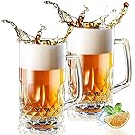 Momugs 32 Ounces Beer Stein Mugs – 2 Pack Extra Large German Style Clear Tall Beer Glasses for Men – Heavy Duty Thick Glass With Handle
