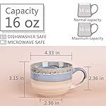 Bosmarlin Large Ceramic Coffee Mug Set of 2, Stoneware Jumbo Latte Mugs for Office and Home, 16 Oz, Dishwasher and Microwave Safe(Blue, 2)