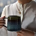 wewlink Large Ceramic Coffee Mug, Pottery Mug,Tea Cup for Office and Home,Handmade Pottery Coffee Mugs,16.5 Oz,Dishwasher and Microwave Safe,kiln altered glaze craft (Green)