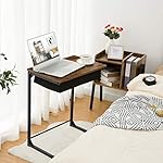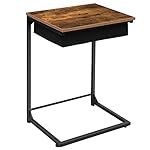 NEVER WORRIED ABOUT STABILITY: This C shape table has metal frame with wooden effect top and adjustable feet, featuring strong stability, cool and fashionable style
