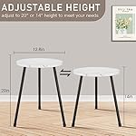 KINNARY Round Side Table, Small Accent End Table for Living Room, Bedroom, Small Spaces, Height Adjustable Metal Legs, Easy Assembly Nightstand Coffee Bedside Table for Office, Marble White