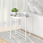 OVICAR Metal Tray End Table, Round Accent Coffee Side Table, Anti-Rust and Waterproof Outdoor Small Side Table, Indoor Modern Sofa Side Table Bedside Table for Living Room Bedroom Balcony