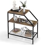 Wolawu End Table 3 Tiers Shelf Rustic Brown Wood Industrial Accent Decorative Sofa Side Table Modern Trapezoid Accent Furniture Living Room Bed Room for Small Place