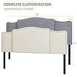 KOTPOP Linen Headboard, Upholstered Arched Headboard with Nailheads Trim Platform, Mid-Rise Breathable Fabric Headboard with Adjustable Height for Queen/King Bed, Beige