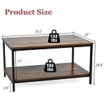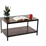 SENIG Small Brown Rectangle Wood and Metal Coffee Table with Storage Shelf for Small Living Rooms