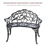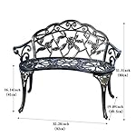This beautifully designed rose bench will add elegance to your front or backyard. Because its cast aluminum material can last for several years, it is easy to clean. The accompanying instructions make it easy for you to assemble. The design of the back panel will stand out and complement your outdoor decoration. Pour a cup of coffee, grab a book, and enjoy the sun on the rose bench.