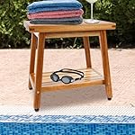 ENKEZI Small Acacia 16 Inches Outdoor Side Table, 2-Tier Sturdy Patio, End Table Weather Resistant, Strong Stability Side Table for Patio, Pool, Porch, Teak Finish (Small)