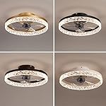ILAHUI 19.7″ Modern Ceiling Fans with Lights and Remote, Dimmable Low Profile Ceiling Fan, Flush Mount Bladeless Ceiling Fan, Smart 3 Light Color Change and 6 Speeds – Black