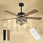 AUTELO Modern Ceiling Fan, 52 Inch Ceiling Fans with Lights and Remote Control, 5 Reversible Blades Ceiling Fans with Lights, Crystal Ceiling Fans in Black and Wooden Finish for Living Room, F9327
