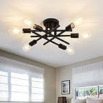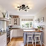 ASGYISA Semi Flush Mount Modern Ceiling Light Fixture, 6 Lights Black Vintage Matte Sputnik Chandelier Ceiling Lamp with E26 Bulb Base for Farmhouse Dining Room Living Room Bedroom Study Kitchen