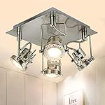 DLLT Modern Track Lighting Fixtures Ceiling, 4-Light Industrial Track Light Fixtures, Adjustable Flush Mount Ceiling Spotlights for Kitchen, Living Room, Hallway, Game Room, GU10 Included Nickel Steel