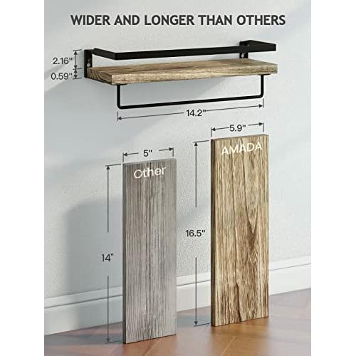 AMADA HOMEFURNISHING Bathroom Shelves with Towel Bar, Floating Shelves, Wall Shelves for Bathroom/Living Room/Kitchen/Bedroom, Light Brown Shelves Set of 2 – AMFS01