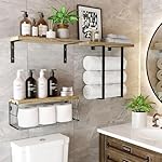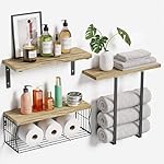 HAMITOR Floating Shelves Wall Mounted Over Toilet: Bathroom Shelf with Towel Rack Paper Holder Storage – Rustic Wood Farmhouse Shelves for Wall Decor/Bathroom