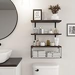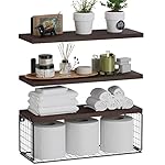 WOPITUES Bathroom Shelf Over Toilet, Floating Bathroom Shelf Wall Mounted with Wire Basket, Floating Shelf for Wall Décor-Rustic Brown