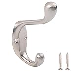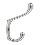 Amazon Basics Wall Mounted Contemporary Metal Dual Coat Hooks – Satin Nickel, 5-Pack