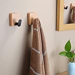 DELITON Towel Hooks Wall Mounted – Adhesive Bathroom Coat Hooks for Hanging Robes Clothes Light Brown, Black Solid Wood Beech Wall Hook 4 Packs