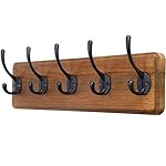 SKOLOO Rustic Wall Mounted Coat Rack with 16 Inch Mounting Hole Distance, Pine Solid Wood Coat Hook Hanger – 5 Hooks for Hanging Clothes Robes Towels Coats