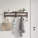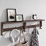 VERTORGAN Coat Hooks, Wood Rack Wall-Mounted, 31.5 Inch Entryway Shelf with 10 Hooks (Brown)