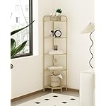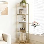 [Stylish Design] This 5-tier corner shelf with gold finish adds a touch of elegance to your living room or bedroom while also providing ample storage and display space for your books, photos, plants and other items. The triangle’s rounded edges are smooth to protect you and your family from scratches.