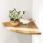 Corner Shelf, 9inch Solid Oak Wood Floating Corner Shelf Wall Mount Round End Floating Speaker Shelf with Wire Hole Display Shelf for Small Plant Photo Frame for Bedroom Kitchen, Living Room