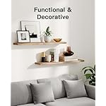 [No Sag or Wobble] The floating shelves for wall are designed with solid metal brackets to provide reliable support up to 22 lbs each without any sag or wobble. Enjoy peace of mind for your favorite decorations knowing that the wooden floating shelves can be secured on many types of walls, including wood studs, concrete, and drywall.
