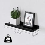 DOLLFIO Floating Shelves Set of 6, Black Wall Shelves with Lip, Display Shelves for Wall Decor, Modern Picture Ledge for Living Room, Bedroom, Nursery, Bathroom, Pictures, Books, Plants- Black