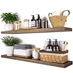 BGMG Wood Floating Shelves 36 inch, Wide Rustic Wooden Wall Shelves for Bathroom Living Room Bedroom Kitchen Farmhouse Set of 2-36x 6.7 x1.25 inch- Walnut Color