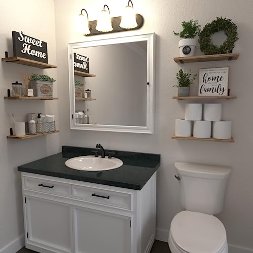 Sturdy & Easy to Assemble- The L-shaped metal brackets are durable, with a capacity of 40Lb. You don’t need to worry about it falling off. WOPITUES wood floating wall shelves for bathroom are super sturdy, very easy to install, and less damage to the wall. No need to worry about stability. Just put your items on, and our wall shelves can bear the weight of your love.