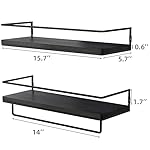 【Compact & Elegant Product Specifications】: The pine board measures 15.7L x 5.7W inches with a 0.6-inch thickness. Package includes 2 pre-assembled shelves, 1 towel rack, 4 expansion screws, 4 long screws, and 4 short screws. These practical and decorative floating shelves add a touch of sophistication to your home decor and improve organization.