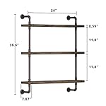 Helsin 3 Tier Industrial Pipe Shelf Rustic Wood Floating Shelves,Wall Display Bookshelf,Storage Rack Sundries Holder for Kitchen Office Bathroom Organization and Home Decor (24inch)