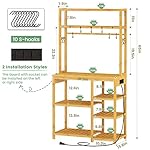 FORABAMB Bakers Rack with Power Outlets, 8-Tier Microwave Stand, Kitchen Utility Storage Shelf 10 S-Shaped Hooks, Coffee Bar Table Station, Standing Rack, 31.5 x 15.7 x 65 Inches, Bamboo