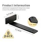 8 Pack Shelf Brackets 12 Inch Floating Shelf Bracket 1/5 inch Thick Heavy Duty Hidden Shelf Brackets Iron Metal Brackets for Shelf Support with Screw Included