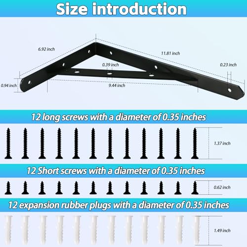 [Size] Black Shelf Brackets 12 inch ,the Shelf Mounting Brackets can bear a maximum weight of 400lbs, Garage Shelf Brackets suitable for kitchens,laundryrooms,bathrooms,balconies,restaurants,garages,backyards,recreational vehicles,shops,benches and tables.