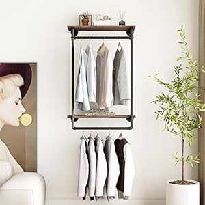 Fixwal Floating Shelves Wall Shelves with Hooks, Rustic Wood Coffee Bar Shelves for Storage, Wall Mounted Shelves with Removable Bar for Kitchen, Bathroom (Black)