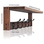 SKOLOO Rustic Wall Mounted Coat Rack with 16 Inch Mounting Hole Distance, Pine Solid Wood Coat Hook Hanger – 5 Hooks for Hanging Clothes Robes Towels Coats
