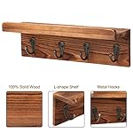 HRONRAD Rustic Key Holder for Wall, Farmhouse Wall Shelf with 4 Hooks, Wall Mounted Key Racks, Wooden Mail Organizer with Hooks for Entryway (Brown – Pine)