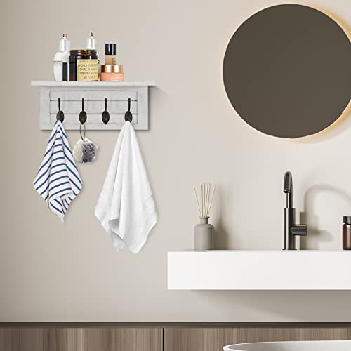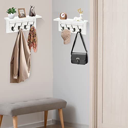 Wall Coat Hooks with Shelf, Wall Mounted Coat Rack with Shelf, Coat Hangers for Wall with 4 Double Hooks, Wood Coat Rack Wall Mounted, Wall Coat Hooks Board for Living Room, Bedroom, White