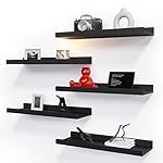 RICHER HOUSE 5 Set Floating Wall Mounted Shelves, Black Shelves for Wall Decor, Modern Picture Ledge Shelf with Lip for Storage, Nursery, Bedroom, Living Room, Bathroom – Black