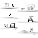 DOLLFIO Floating Shelves Set of 6, White Wall Shelves with Lip, Display Shelves for Wall Decor, Modern Picture Ledge for Living Room, Bedroom, Nursery, Bathroom, Pictures, Books, Plants- White