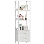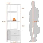 Home Shop Farmhouse Shelves White Farmhouse Shelves Furnulem 4-Tier Corner Shelf, Bookshelf with 2 Storage Drawers, 57.28”Tall Narrow Bookcase, Standing Shelf Organizer Unit for Living Room, Bedroom, Metal Frame, Wood Display Shelf