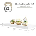 Versatile & Functional Floating Wall Shelves: Install the White floating shelves for bedroom or bathroom to hold beauty/hair products, place the wall shelf under a mirror in the entryway, or exhibit family photos gallery style in a long hallway – Use as book shelf for wall, wall decor for bedroom, over the toilet shelf, kitchen floating shelves, floating nightstand, kitchen decor, living room wall decor, display shelf, and more