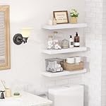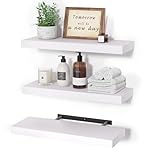 upsimples Floating Shelves for Wall Decor Storage, White Wall Mounted Shelves Set of 3, Sturdy Rustic Wood Shelves Hanging for Bedroom, Bathroom, Living Room, Kitchen, Corner, Book