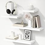 Boswillon White Floating Shelves with Invisible Bracket, Rustic Wood Wall Mounted Shelves Set of 4, Hanging Wall Shelves Display for Room Wall Decor, Living Room, Bedroom, Kitchen, Bathroom – White