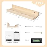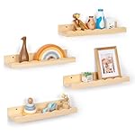 Fun Memories Picture Ledge Shelf for Wall, 16 inch Pine Wood Nursery Book Shelves Set of 4- Wall Book Shelves for Kids Room, Home Decor – Kitchen Spice-Natural