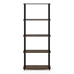 Furinno Turn-N-Tube 5-Tier Multipurpose Shelf / Display Rack / Storage Shelf / Bookshelf, Round Tubes, Walnut/Brown